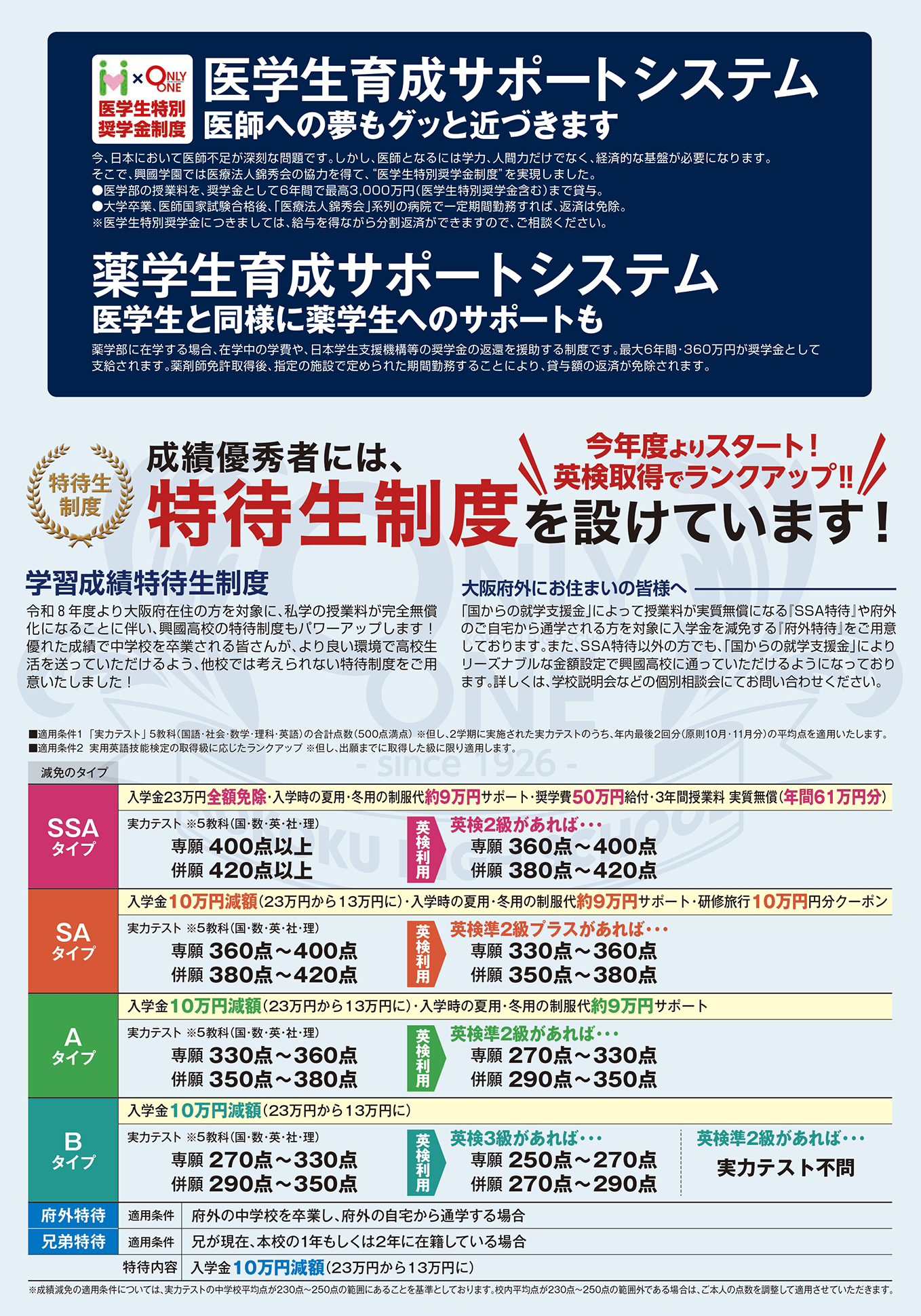 その他、詳細は興國高等学校事務局までお問い合わせ下さい。