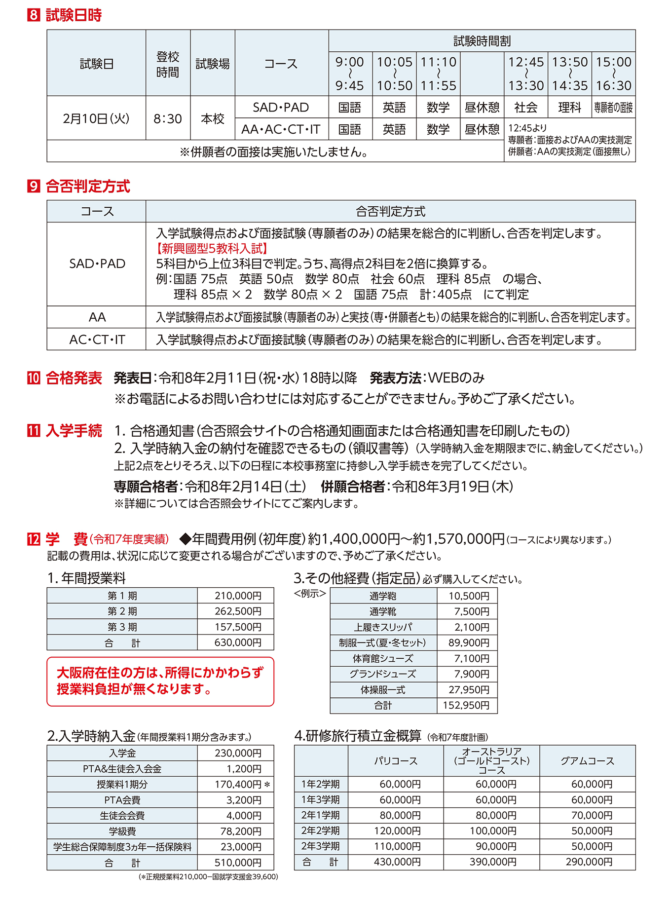 その他、詳細は興國高等学校事務局までお問い合わせ下さい。