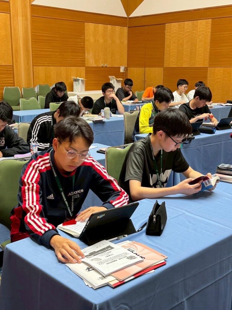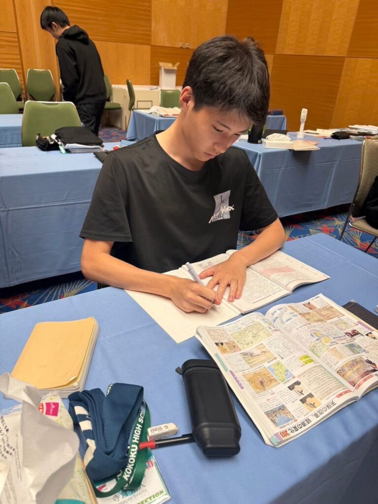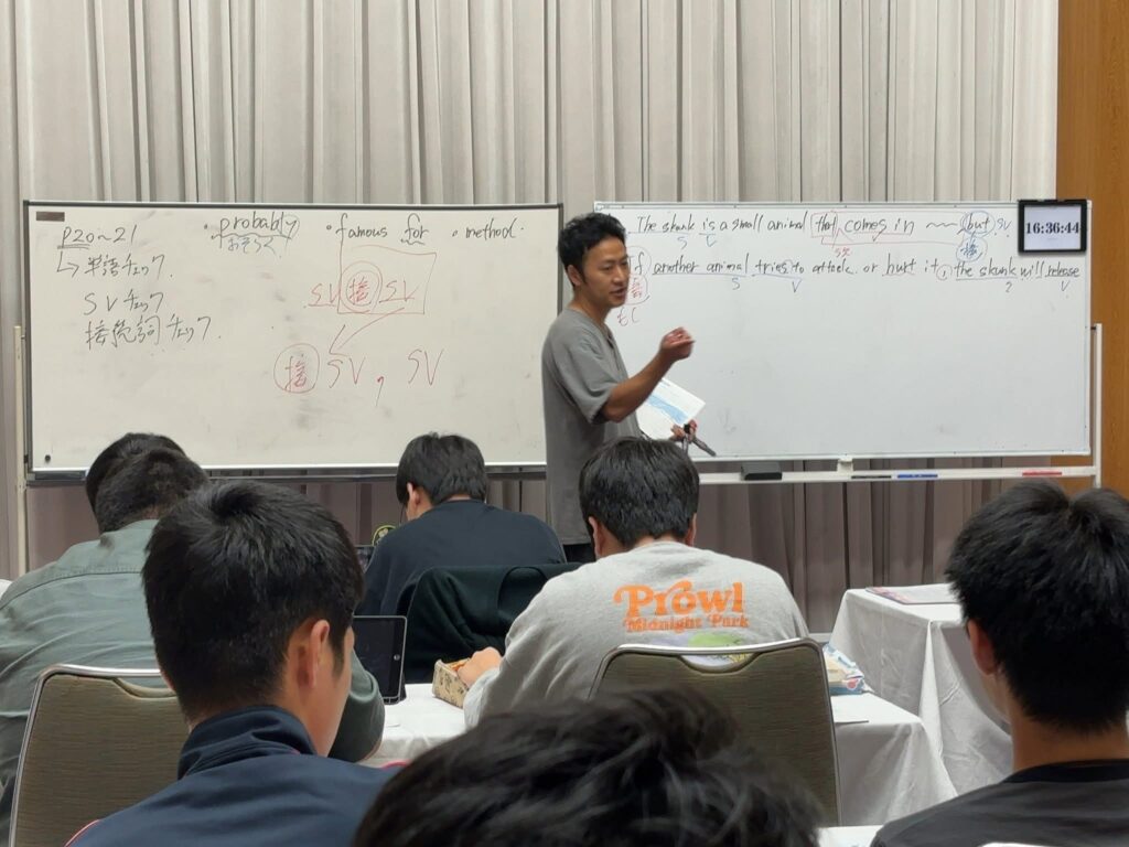 朝食を食べ終えた後は、再び勉強の時間です。本日より、本格的に70分×7コマの授業がスタートしました。集中した様子で講義を聞き、大切な所はメモを取るなど勉強に真摯に取り組んでくれています!自習時間も自分に必要な課題・苦手分野の克服、また明日行われます実用英語技能検定二次試験の面接対策に全員が取り組み、熱心に勉学に励んでくれています!