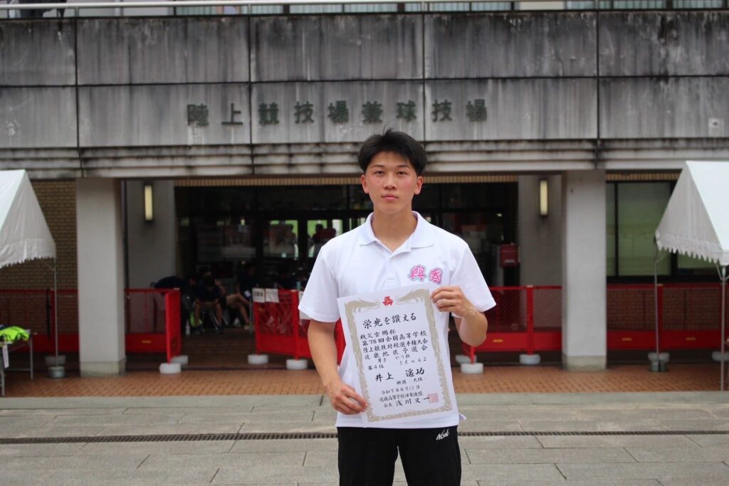 やり投で4位となった井上 遥功は8月25日から広島県で行われる全国高等学校陸上競技対校選手権大会に出場します。
