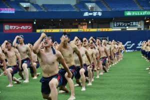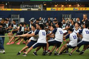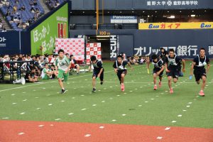 各クラスでも、リレーや綱引きなどクラス対抗での優勝を目指し、必死に戦い、応援する姿が見られ、随所に男子校らしい熱闘、『興國魂』を見ることができました!競技中もオーロラビジョンに生徒の様子が映し出され、臨場感のある演技や表情を見せ、ヒーローインタビューで生徒の生の声を紹介する等、京セラドームならではの演出で観ている方にも楽しんでいただけたと思います!