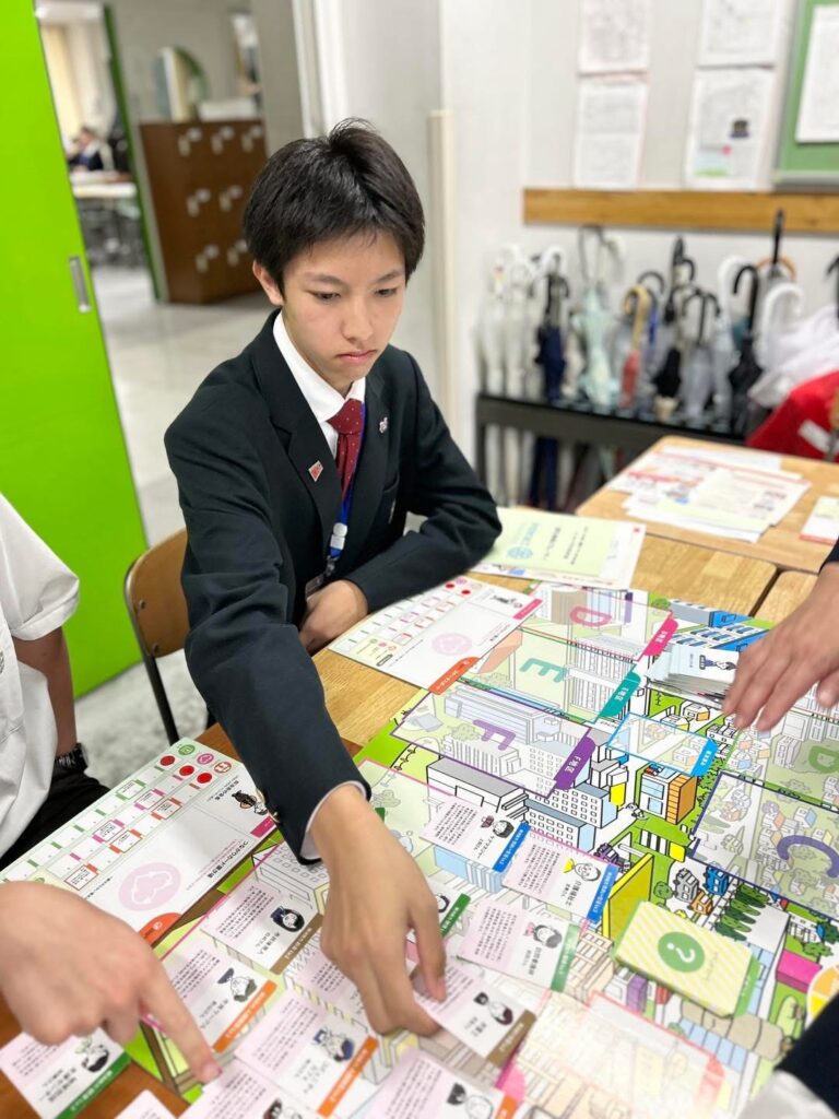 その後は、社会の制度や仕組みを学びながら地域課題への対応策を考えるワークショップを体験。「コミュニティコーピングゲーム」では地域を救う知恵を出し合い、「社会保障ゲーム」では社会保障制度について楽しく理解を深めました。未来を担うインターアクターが、今回得た気づきや学びを生かし、それぞれのフィールドで活躍し、より良い社会づくりの推進役となっていくことを強く期待します。