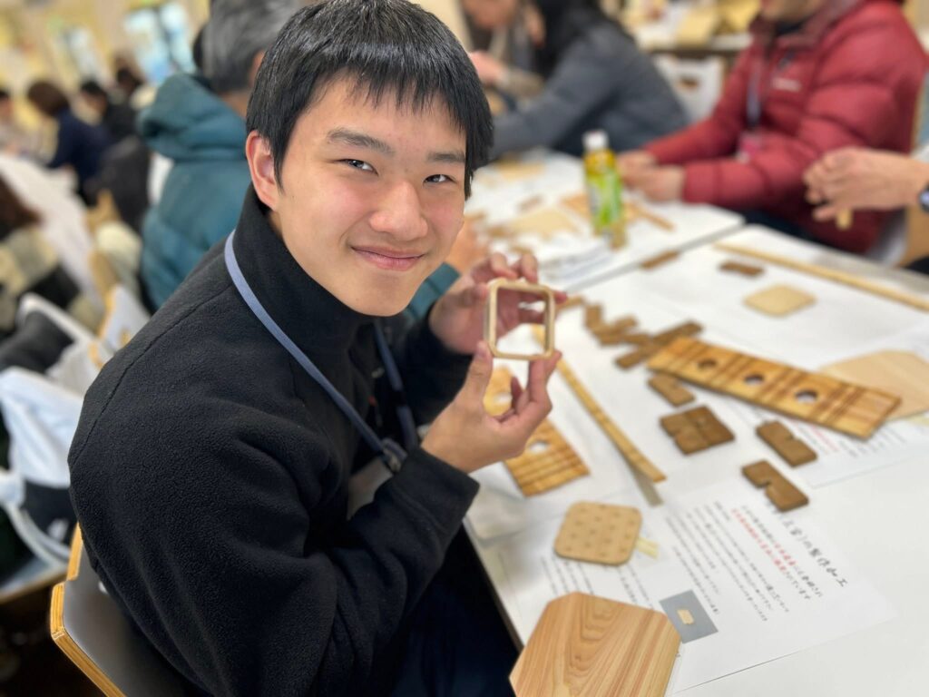 お昼を挟んで行われたワークショップでは、伝統的な「三方台」づくりに挑戦。木の温もりに触れながら、ものづくりの奥深さと楽しさを存分に体感することができました。また、今回は他校のインターアクトクラブの仲間だけでなく、ロータリークラブやローターアクトの皆様とも交流させていただきました。学校や世代を超えて笑顔で語り合う時間は、生徒たちにとって大きな刺激となりました。