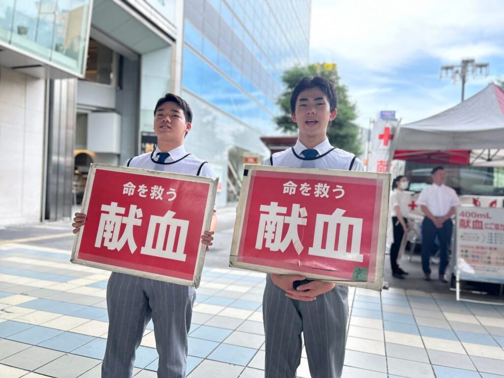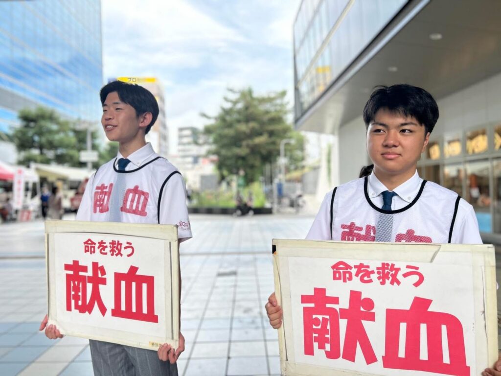 「命を救う献血」と書かれたパネルを手に、大きな声でご協力をお願いすると、多くの方が足を止め、温かい応援やご協力をくださいました。