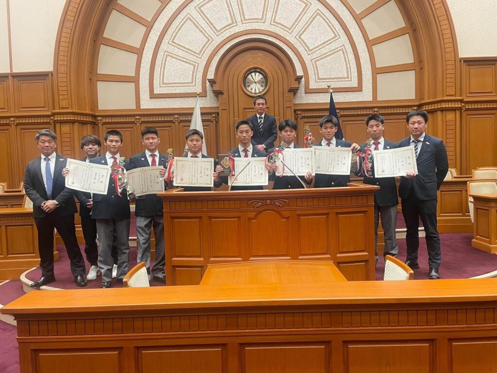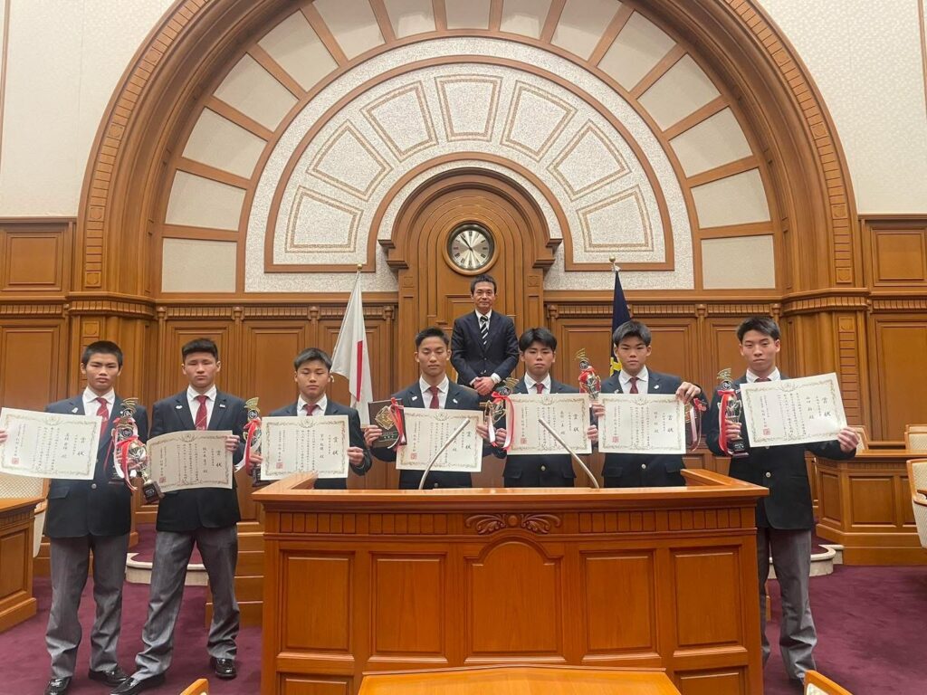 杉村議長からは「決勝戦では迫力のある熱い試合を見させていただきました。全国選抜大会での皆さんの活躍を大いに期待しております。」と激励のお言葉をいただきました。