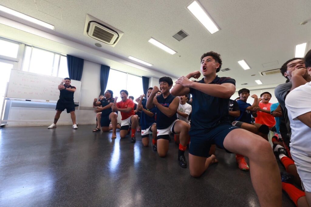 その後国際交流では、マオリ文化の先生からニュージーランド代表のオールブラックスも試合前に披露する「Kapa o Pango(カパ・オ・パンゴ)」を興國高校のために伝授してくれました。ハカとは神秘的で伝統的なものであり、リスペクトの気持ちを持って行うもの。ハカに対する姿勢、言葉の意味を教えていただいた上でレクチャーしてくれました。