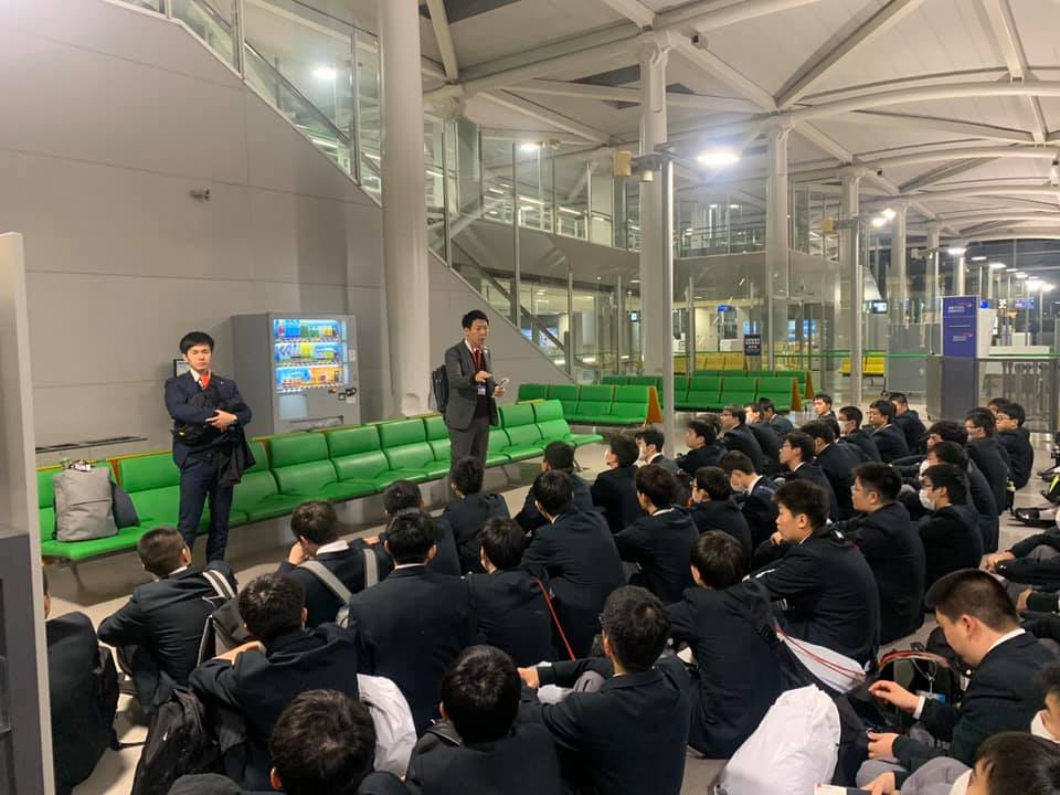 夜分遅い中多くの保護者の方々にお見送りいただき、ありがとうございました。大きなトラブルもなく無事に出国手続きを終えました。この研修旅行が、彼らにとって一生の思い出となるよう引率の教員も頑張って参ります!