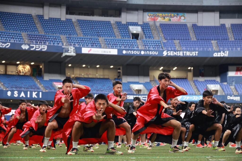 應援團(剣道部有志)・チアボーイズ(ラグビー部有志)がリードした『応援チャント』では、スタジアムが揺れるほどの大合唱が響きわたり、生徒たちの楽しそうな満面の笑顔がとても印象的でした。