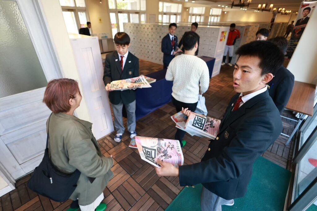 全体会のオープニングでは、ウィンドアンサンブルによる演奏、応援団・チアボーイズによるパフォーマンスをお届けいたしました。続いて、学校長より本校の教育哲学、自慢のトピックス、特待制度や100周年に向けたビジョンをご紹介し、さらに近年の高校入試制度や傾向についてもご説明しました。その後は、各コースに在籍する生徒や教員が登壇し、特色ある取り組みや学習成果についてプレゼンテーション形式でお伝えしました。リアルな声を通じて、入学後の姿はもちろん、3年後に成長した自分の姿までイメージしていただけたことと思います。