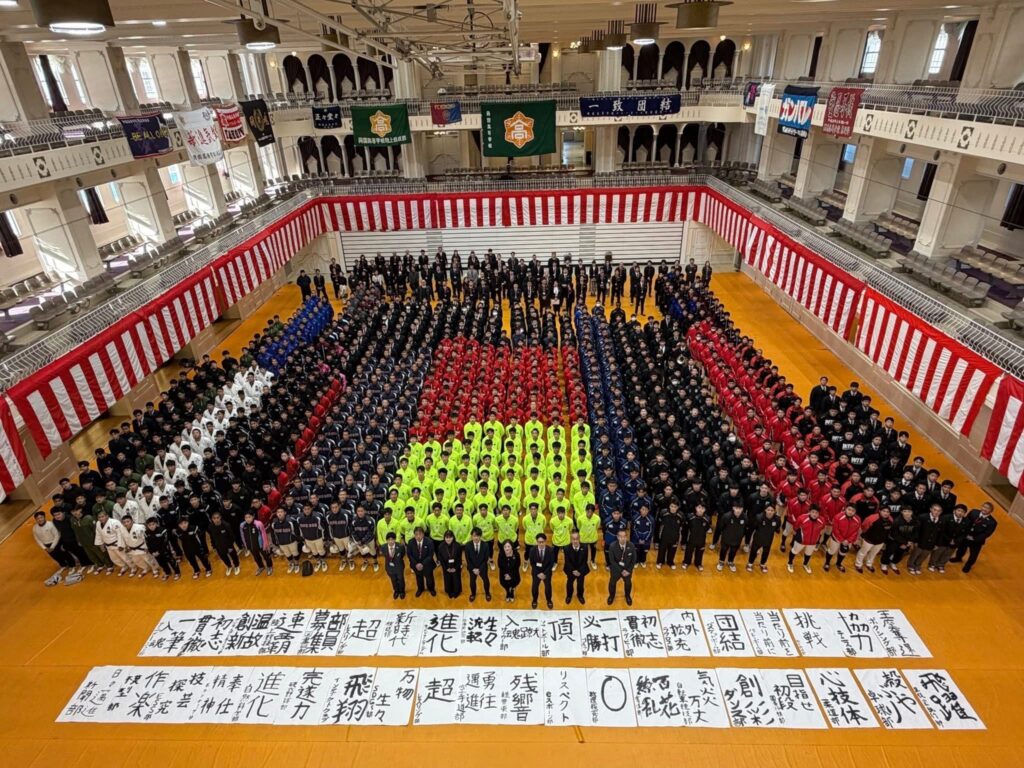 令和8年 第18回 年初始動式を執り行いました。アリーナに会したクラブ生に対して学校長より年頭の挨拶があり、年末年始に掛けて活躍した陸上競技部とサッカー部を労いながら「諦めない心が、最後の最後に奇跡を起こすということを改めて実感しました。この学園のモットーは『諦めないこと』。興國高校名にこそ負えやと校歌にあるように、2年生・1年生のみなさん、興國の名を背負ってやり切ってください。次に輝くのは、あなた方です。」と力強いエールが送られました。その後、運動部20クラブ•文化部18クラブの各主将・部長が舞台に登壇し、順に今年の決意を表明いたしました。