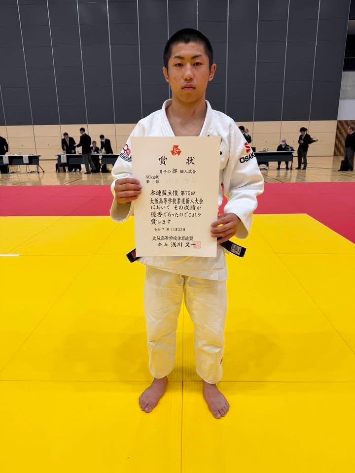 団体戦では近畿決定戦で敗退し、3年連続近畿大会出場はなりませんでした。個人戦では2年生で主将の嶋本愛士(南あわじ市立沼島中学校出身)が60kg級で3位となり、来年の1月に行われる近畿大会出場を決めました。