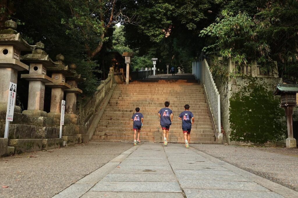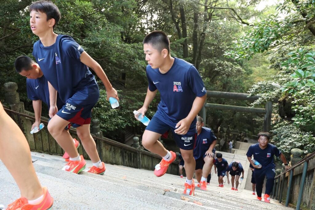 AA Camp最終日となる本日は、5:30に起床し、早朝より金刀比羅宮を参拝いたしました。本宮までの785段。一般の方々なら40分ほど掛かるところを、本校のアスリートたちはおよそ25分ほどで駆け上がりました。本宮から琴平の街並みを眺め、気持ちのいい風を感じ、本宮にてそれぞれの誓いを立てて、下山しました。
