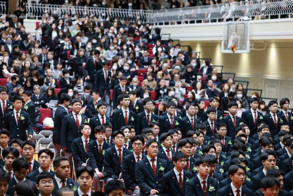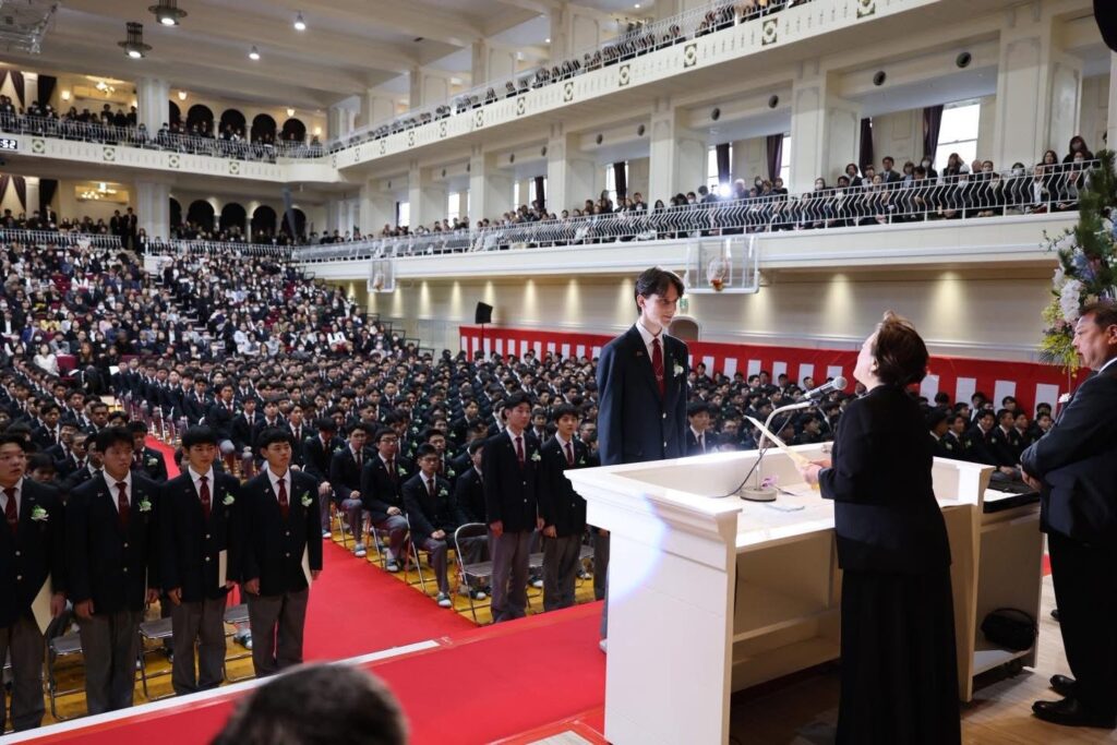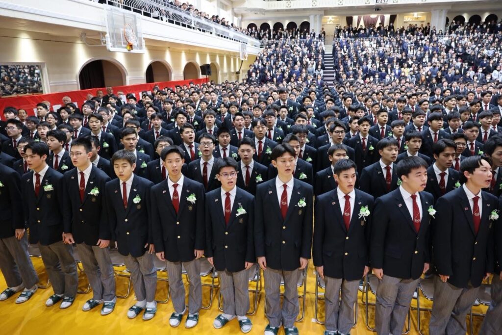会場には1000名を超える保護者の皆様にご来校いただき、717名の卒業生一人ひとりの晴れやかな表情が、これまでの努力と成長の軌跡を静かに物語っていました。少し緊張しながらも胸を張って入場する姿には、3年間で培った自信と誇りがにじみ、会場は温かな拍手に包まれました。