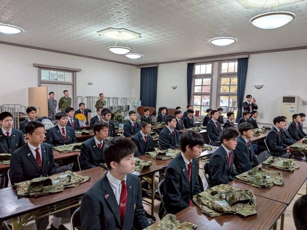 朝、学校を出発し信太山駐屯地へ到着後、迷彩服に着替えた瞬間から生徒たちの表情は一気に“隊員モード”に。