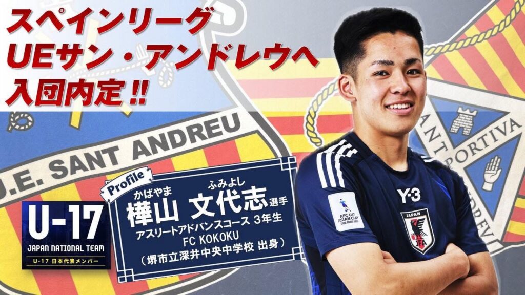 3年 アスリートアドバンスコース FC KOKOKUの樺山文代志(堺市立深井中央中学校出身)が2026シーズンよりスペインのサンアンドレウに加入することが内定いたしました!