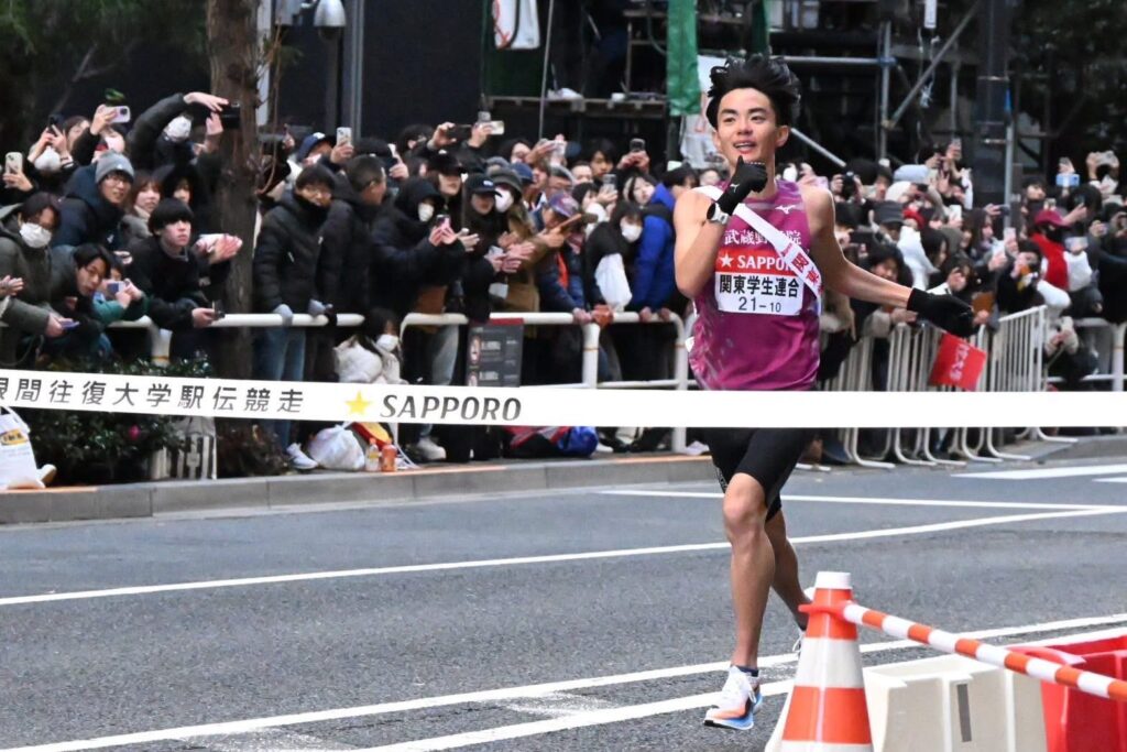 関東学生連合チームの第10区(鶴見中継所〜大手町・読売新聞社前23.0km)に出走した武蔵野学院大学4年の佐野 颯人選手(令和5年卒/羽曳野市立峰塚中学校出身)は、1時間8分33秒の区間4位相当(歴代6位)の素晴らしい走りで初の箱根路を駆け抜けました。