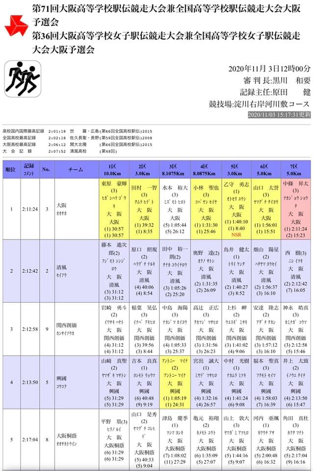 ディフェンディングチャンピオン関大北陽高校が途中棄権してしまうなど例年にない風の影響を受けるレースとなり選手達は苦戦をしいられる形となりましたが同時に自分達に足りない物が何なのかもしっかりと学ぶ事ができた駅伝でした。