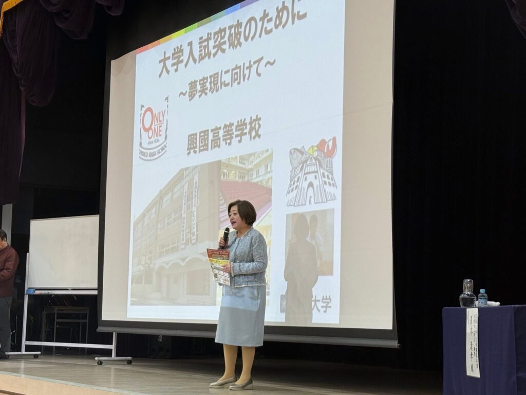 特別講師として近畿大学 入学センターの屋木 清孝氏にご講演いただきました。現在の大学受験の現状や、大学の二極化のお話、そして目標の大学の決め方など大変丁寧にお話いただきました。