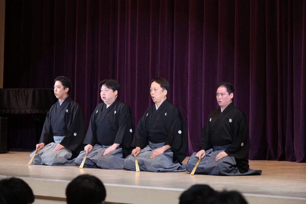 本日、SADとPADの1•2年生を対象にグローバルスタディの一環として、長きにわたりご縁をいただいている山本能楽堂の皆様にご来校いただき、「能」のワークショップをしていただきました。